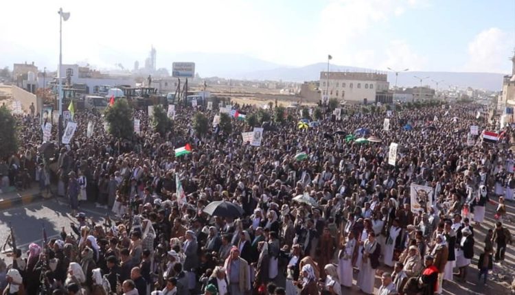 وجددت الحشود في مختلف الساحات الثبات على الموقف حتى تطهير كل شبر من الأراضي الفلسطينية المحتلة.. معبرة عن الفخر بالعمليات التي تنفذها القوات المسلحة اليمنية ضد العدو الصهيوني وداعميه والتي جعلت البحار والمحيطات جحيما على الأمريكي والبريطاني ومن دار في فلكهم.