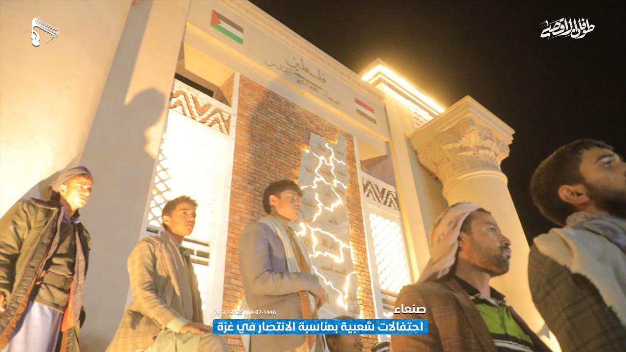 شاهد | احتفالات شعبية حاشدة في صنعاء بانتصار غزة