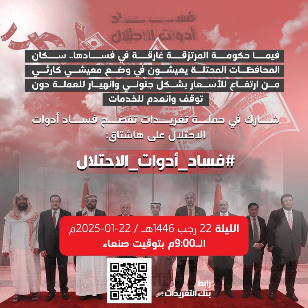 ودعا المنظمون إلى المشاركة في الفاعلة في الحملة تضامناً مع سكان المحافظات المحتلة الذين يعيشون في وضع معيشي كارثي من ارتفاع للأسعار بشكل جنوني وانهيار للعملة دون توقف وانعدم للخدمات، فيما حكومة المرتزقة غارقة في فسادها، على هاشتاق: