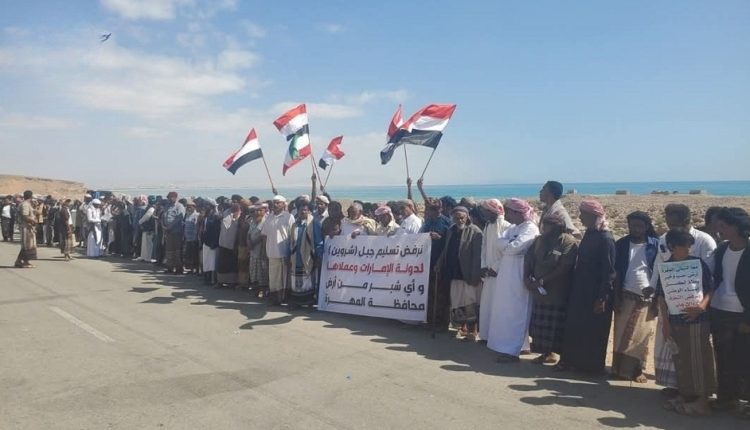 نظم أبناء وقبائل مديرية قشن في محافظة المهرة، اليوم، وقفة احتجاجية سلمية رفضاً قاطعاً لتسليم موقع في منطقة “ليبن” بجبل شروين لشركة إماراتية لإنشاء مشروع لسان بحري في المديرية.