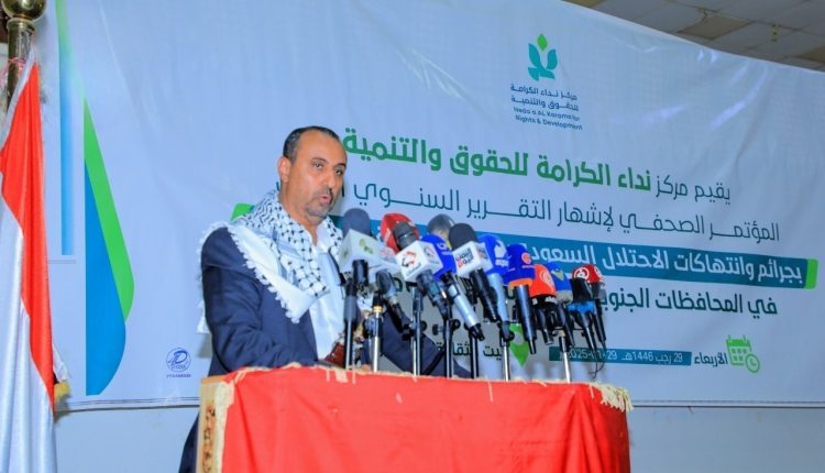 رصد مركز نداء الكرامة ألفا و385 جريمة وانتهاكا للاحتلال السعودي الإماراتي في المحافظات الجنوبية خلال العام 2024م.