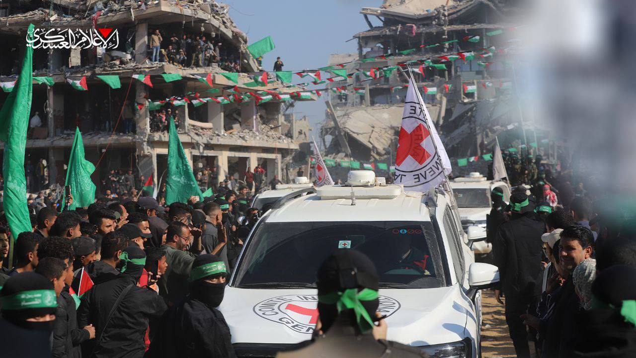 وانتشر مقاومو “سرايا القدس” و “كتائب القسام” في منطقة تسليم الأسرى بخانيونس، حيث ظهرت مركبات المقاومة الفلسطينية لحركتي حماس والجهاد الإسلامي، وسط حشود فلسطينية من الأهالي الذي سيشهدون عملية تسليم الأسرى.