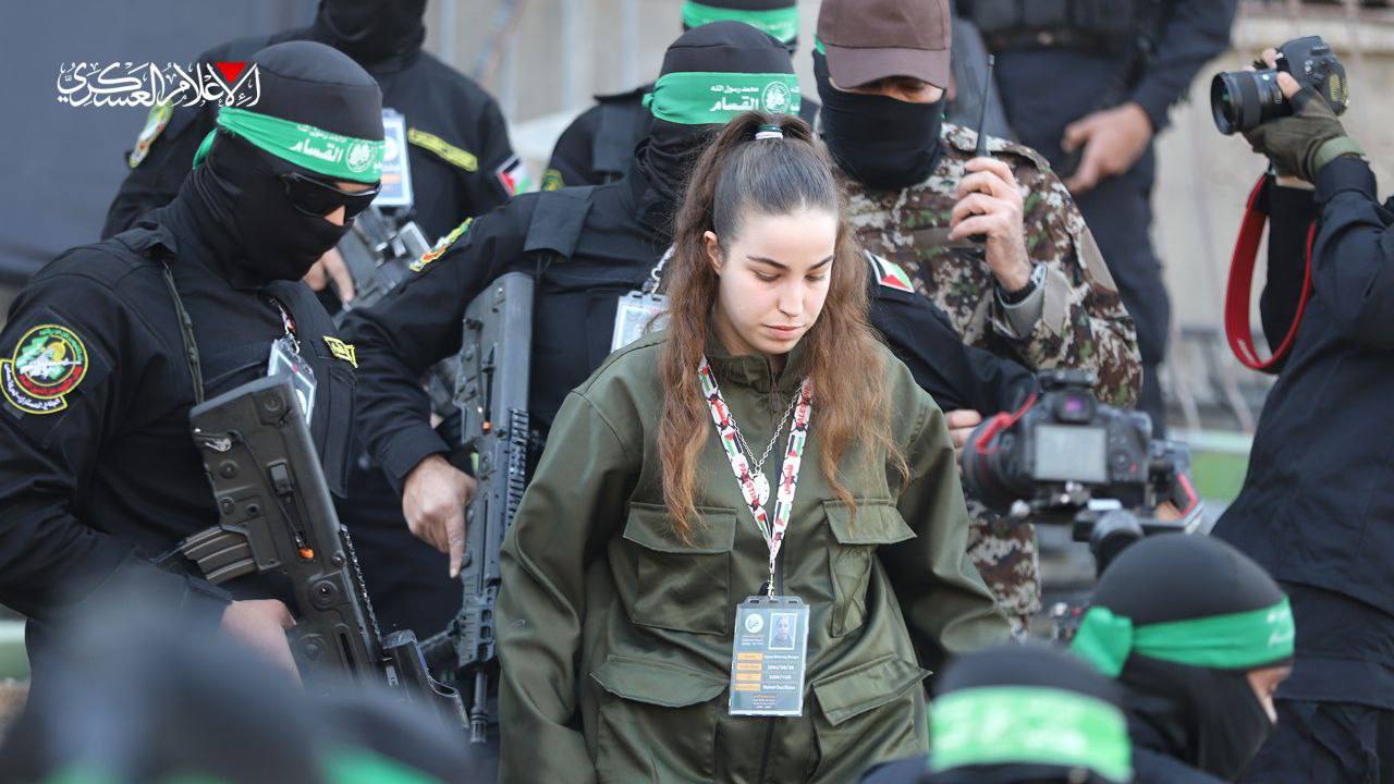وخرجت المُجنَّدة “بيرجر” من وسط ركام مخيم جباليا برفقة عناصر “وحدة الظل” في حركة حماس، ثم صعدت إلى المنصة التي جهزتها الحركة في المنطقة؛ لإتمام مراسم التسليم.