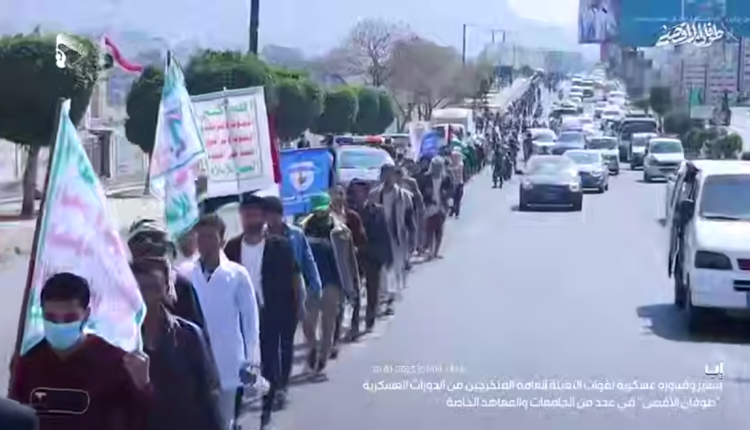 شاهد| مسير ومناورة عسكرية لقوات التعبئة العامة المتخرجين من الدورات العسكرية “طوفان الأقصى” من عدد من الجامعات والمعاهد الخاصة بمحافظة إب