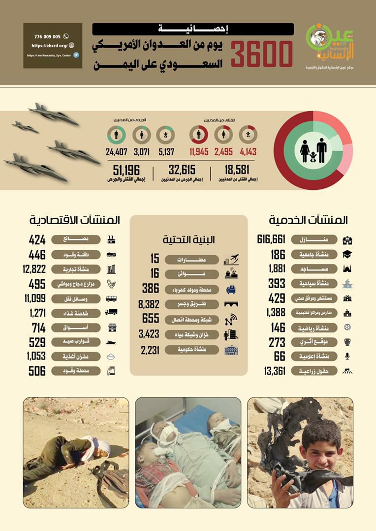 صور إحصائية 3600 يوم من العدوان الأمريكي السعودي على اليمن يمانيون/ صور شاهد| إحصائية 3600 يوم من العدوان الأمريكي السعودي على اليمن (إنفوجرافيك) Share
