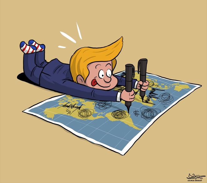 كاريكاتير هذيان ترامب يهز النظام العالمي (كاريكاتير) يمانيون/ كاريكاتير هذيان ترامب يهز النظام العالمي Share