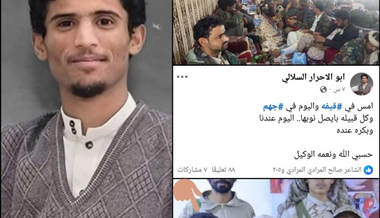 وكان الشاعر راشد الحطام قد استشهد تحت التعذيب داخل سجون الفصائل في مأرب، عقب أيام من اختطافه بسبب تضامنه مع غزة وترديده لشعار “الصرخة”.