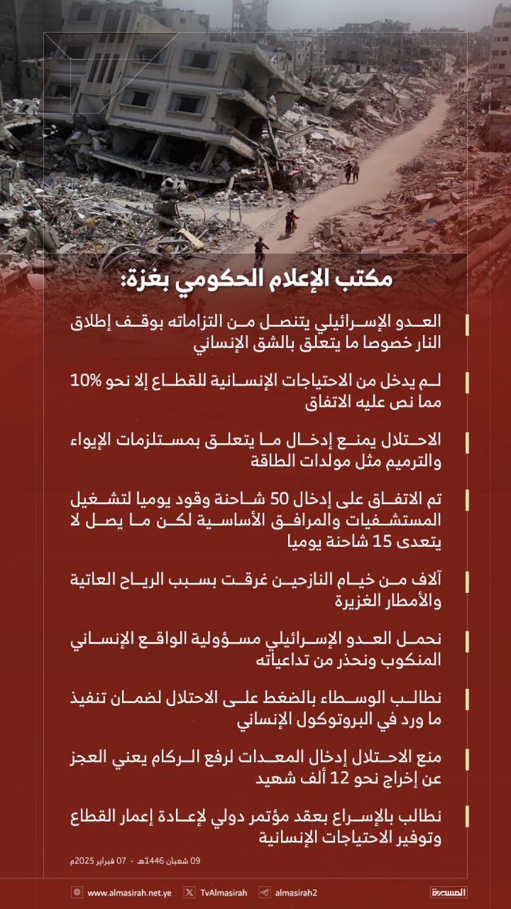 صور مكتب الإعلام الحكومي بغزة يفند جوانب تنصل العدو من البرتوكول الإنساني يمانيون/ صور مكتب الإعلام الحكومي بغزة يفند جوانب تنصل العدو من البرتوكول الإنساني Share