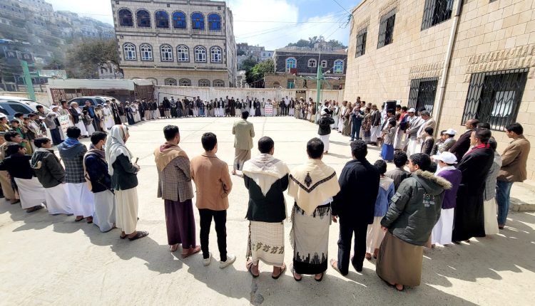 وقفة احتجاجية في حجة تنديداً بالمخططات الأمريكية لتهجير أبناء غزة