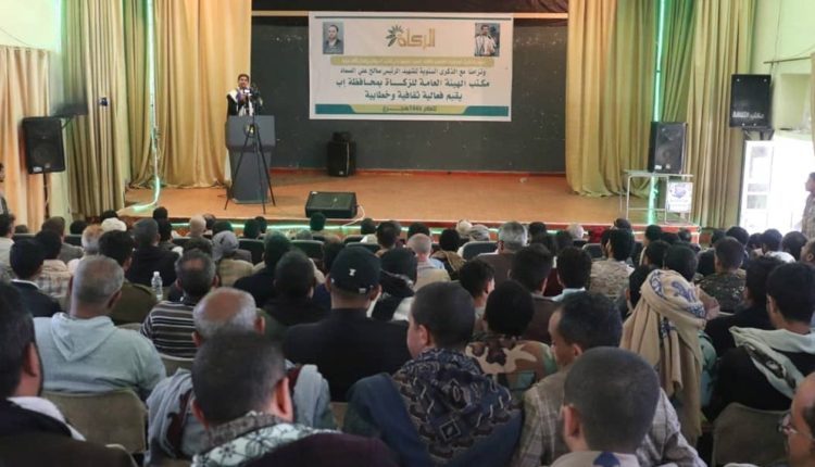 نظم مكتب الهيئة العامة للزكاة بمحافظة إب، اليوم، فعالية ثقافية وخطابية لإحياء الذكرى السنوية للشهيد القائد حسين بدر الدين الحوثي، والشهيد الرئيس صالح الصماد، بحضور قيادات رسمية وشخصيات اجتماعية.
