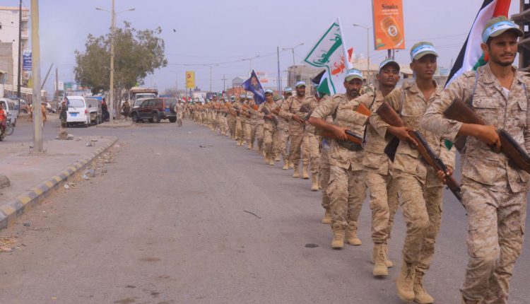 مسير عسكري لخريجي الدورات القيادية لقوات التعبئة العامة بالحديدة