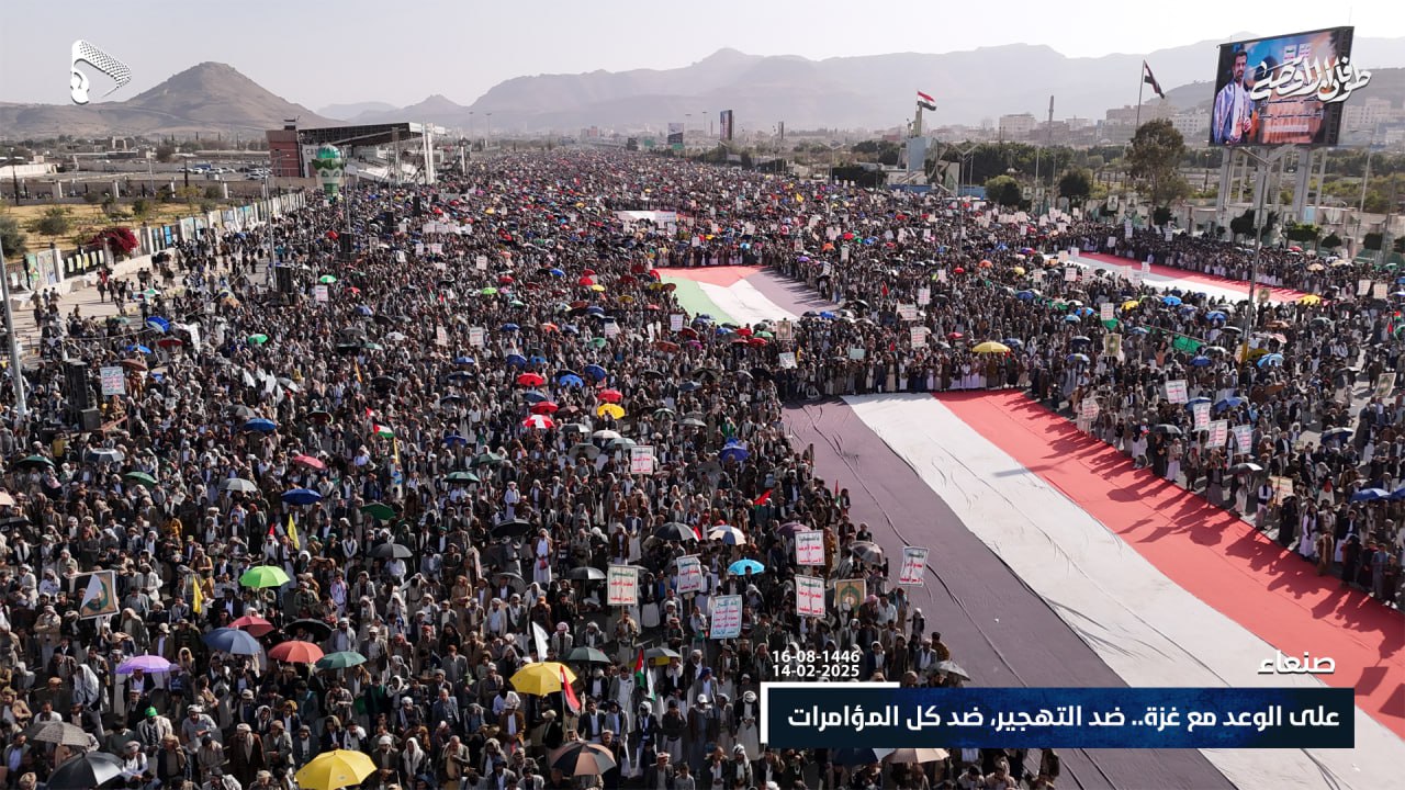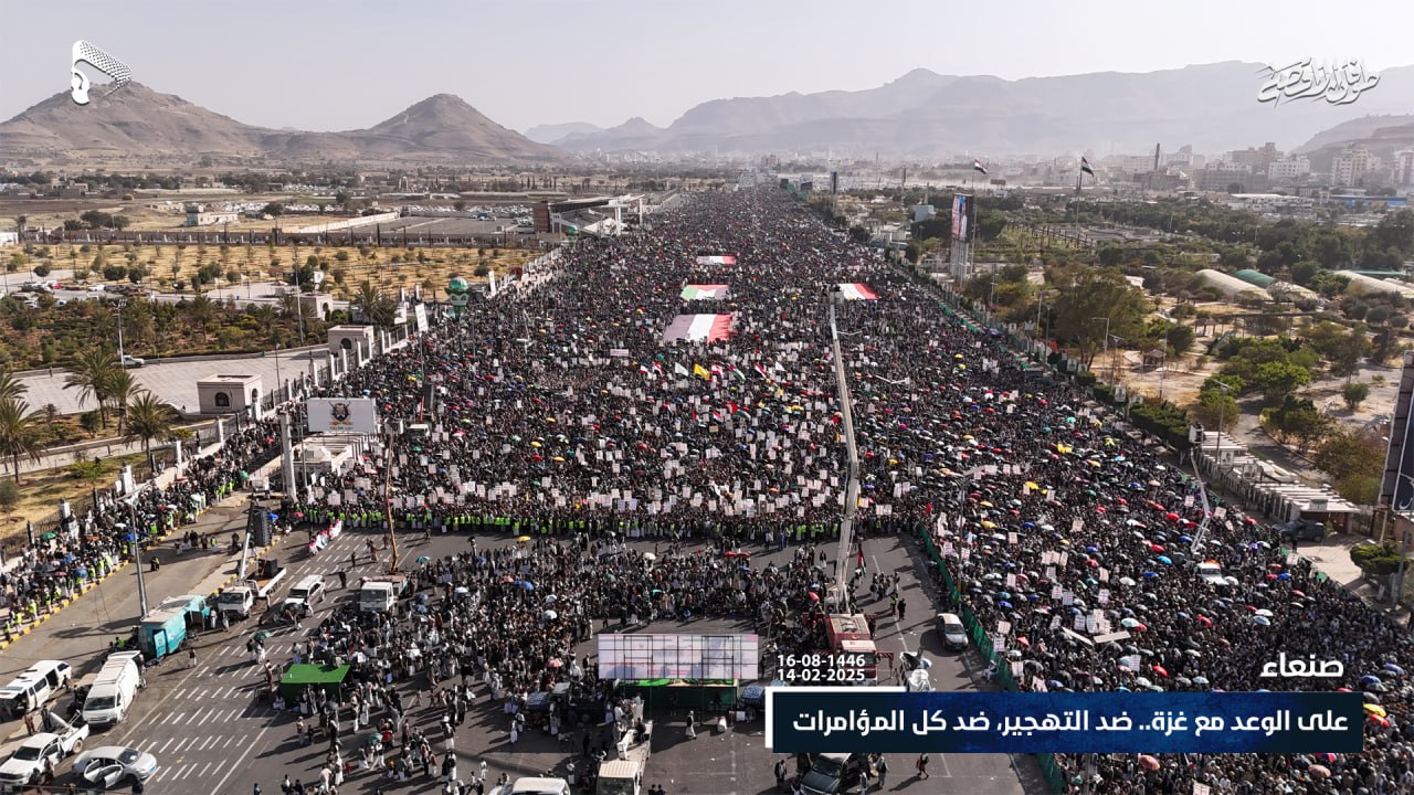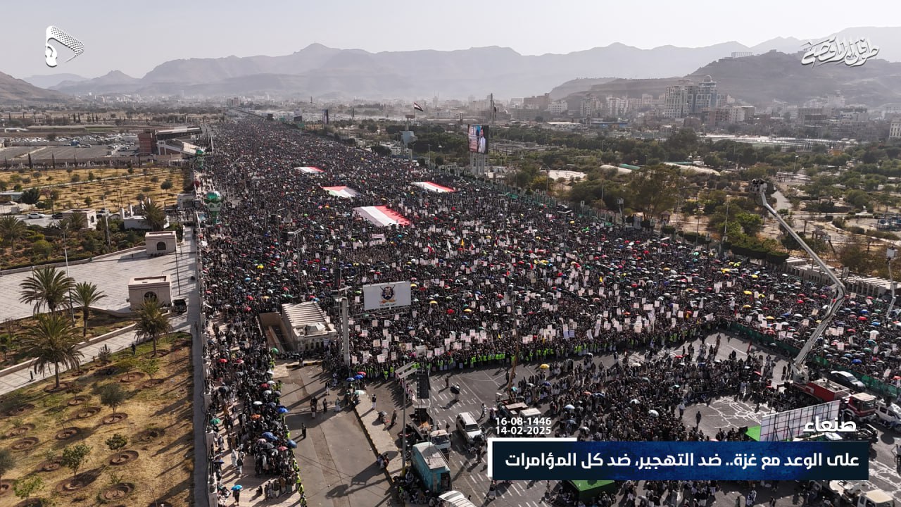 صور جوية| طوفان يمني تحذيري للعدو الإسرائيلي والأمريكي… حشود مليونية استثنائية في مسيرة “على الوعد مع غزة.. ضد التهجير، ضد كل المؤامرات” في ميدان السبعين بالعاصمة صنعاء 16-08-1446هـ | 14-02-2025م