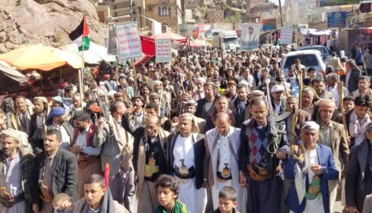 71 مسيرة ووقفة بالمحويت رفضا لمخطط المجرم ترامب تهجير الشعب الفلسطيني