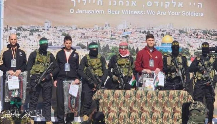 وأظهرت المشاهد لحظة وصول الأسرى الثلاثة برفقة مقاتلي القسام وسرايا القدس، وصعودهم إلى المنصة لإلقاء كلمات باللغة العبرية.
