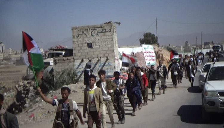 مسير راجل ووقفة لخريجي دورات طوفان الأقصى في سنحان بصنعاء