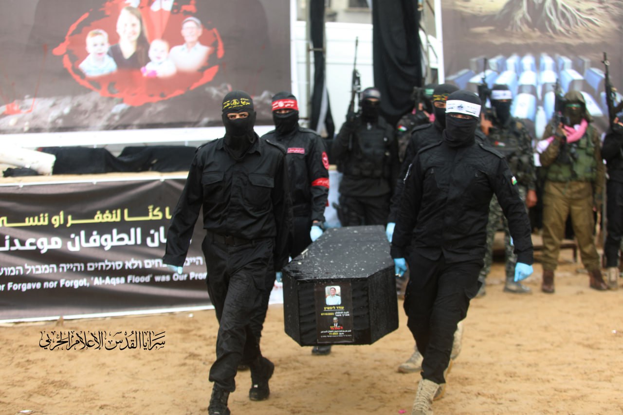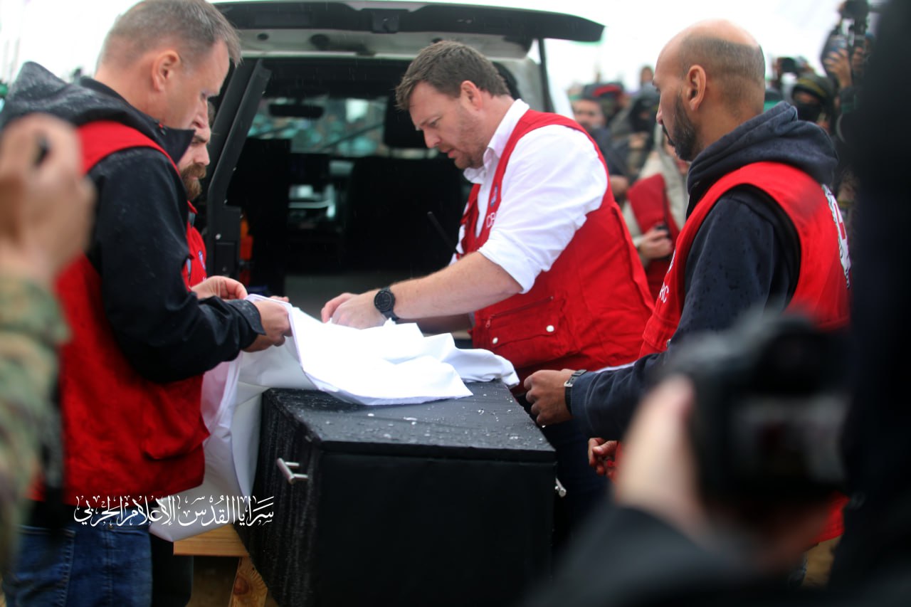 صور| سرايا القدس تنشر صوراً من تسليم جثمان الأسير الصهيوني “عوديد ليفشيتس” وجثامين عائلة “بيباس” ضمن المرحلة الأولى من “صفقة طوفان الأقصى” لتبادل الأسرى