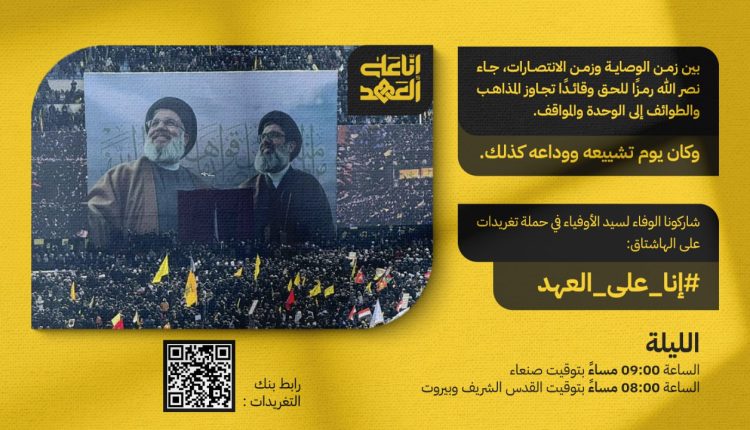 تفاعل غير مسبوق مع حملة تغريدات “إنا على العهد” وفاء لسيد الأوفياء الشهيد حسن نصر الله