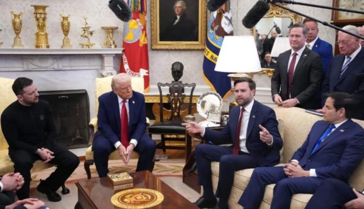 واتهم الرئيس الأمريكي كييف بـ”المقامرة بحرب عالمية ثالثة”، فيما قال نائبه جي دي فانس إنه “من غير اللائق أن تأتي (يا زيلينسكي) إلى المكتب البيضاوي لتحاول مقاضاتنا أمام وسائل الإعلام الأمريكية.
