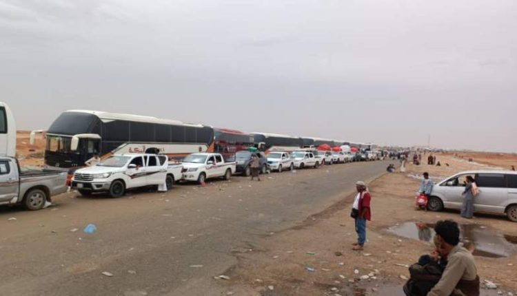 وقال مسافرون عبر منفذ الوديعة البري بمحافظة حضرموت، إن المنفذ الرابط بين اليمن والسعودية، يشهد منذ أيام، ازدحاماً خانقاً في حركة العبور، مع تزايد كبير في أعداد باصات النقل الجماعي والسيارات الخاصة، ما يضطر المواطنين المسافرين “غالبيتهم من المعتمرين” إلى افتراش الأرض والمبيت قبالة المنفذ لقرابة أربعة أيام، حتى يتمكنوا من الوصول إلى بوابة المنفذ والدخول إلى الأراضي السعودية لأداء فريضة العمرة.