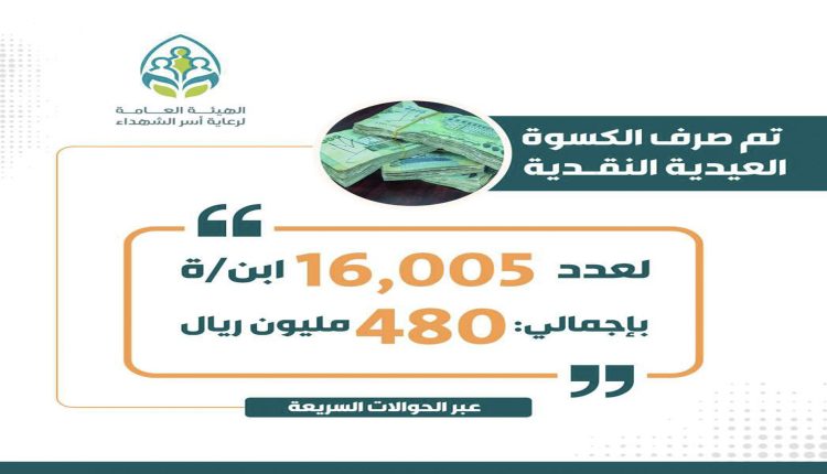 يستهدف صرف الكسوة العيدية النقدية 16 ألفًا وخمسة من أبناء وبنات الشهداء بمحافظات الحديدة، الضالع، المحويت، تعز، ريمة، شبوة، لحج ومارب” وأجزاء من محافظات “البيضاء، حجة، ذمار، صعدة وصنعاء”، بتكلفة 480 مليونًا و120 ألف ريال.