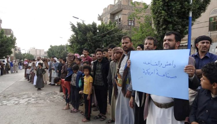 أبناء مديرية آزال في أمانة العاصمة ينظمون وقفة احتجاجية تنديداً بجرائم التكفيريين بحق المدنيين السوريين