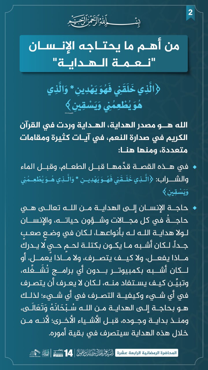 من أهم ما يحتاجه الإنسان “نعمة الهداية”.. {الَّذِي خَلَقَنِي فَهُوَ يَهْدِينِ * وَالَّذِي هُوَ يُطْعِمُنِي وَيَسْقِينِ}[الشعراء:78-79].