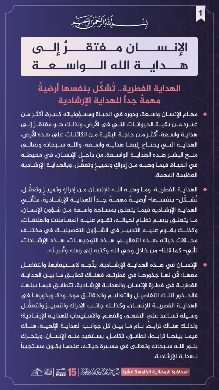 صور الإنسان مفتقرٌ إلى هداية الله الواسعة يمانيون/ صور الإنسان مفتقرٌ إلى هداية الله الواسعة.. الهداية الفطرية..تُشكِّل- بنفسها- أرضيةً مهمةً جداً للهداية الإرشادية Share