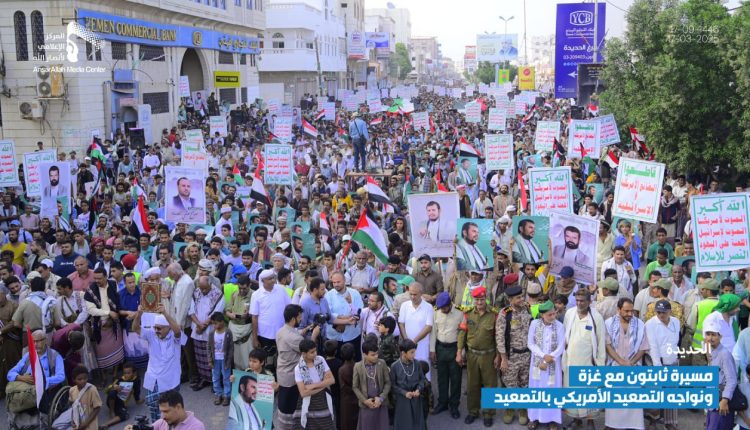 133 مسيرة جماهيرية في الحديدة تؤكد الاستمرار في نصرة غزة ومواجهة التصعيد الأمريكي