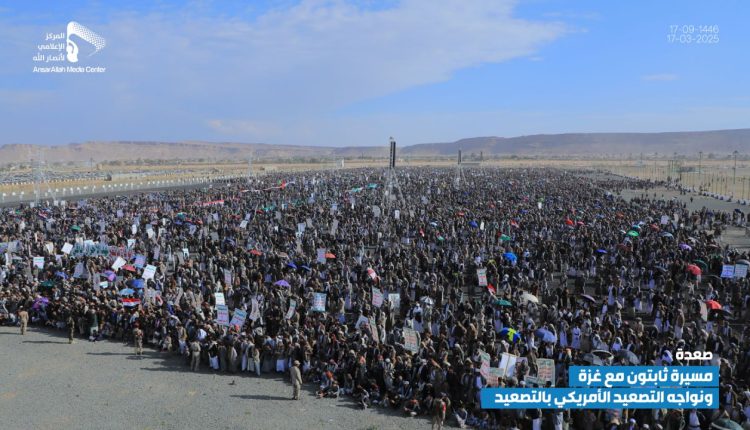 أبناء صعدة يحتشدون في 35 ساحة تأكيدا على الثبات في دعم الشعب الفلسطيني والتصدي للعدوان الأمريكي