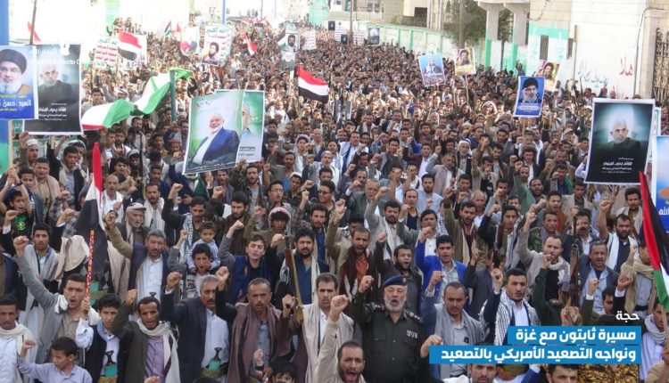 أبناء حجة يخرجون في مسيرات كبرى دعماً للشعب الفلسطيني ومواجهة للعدوان الأمريكي