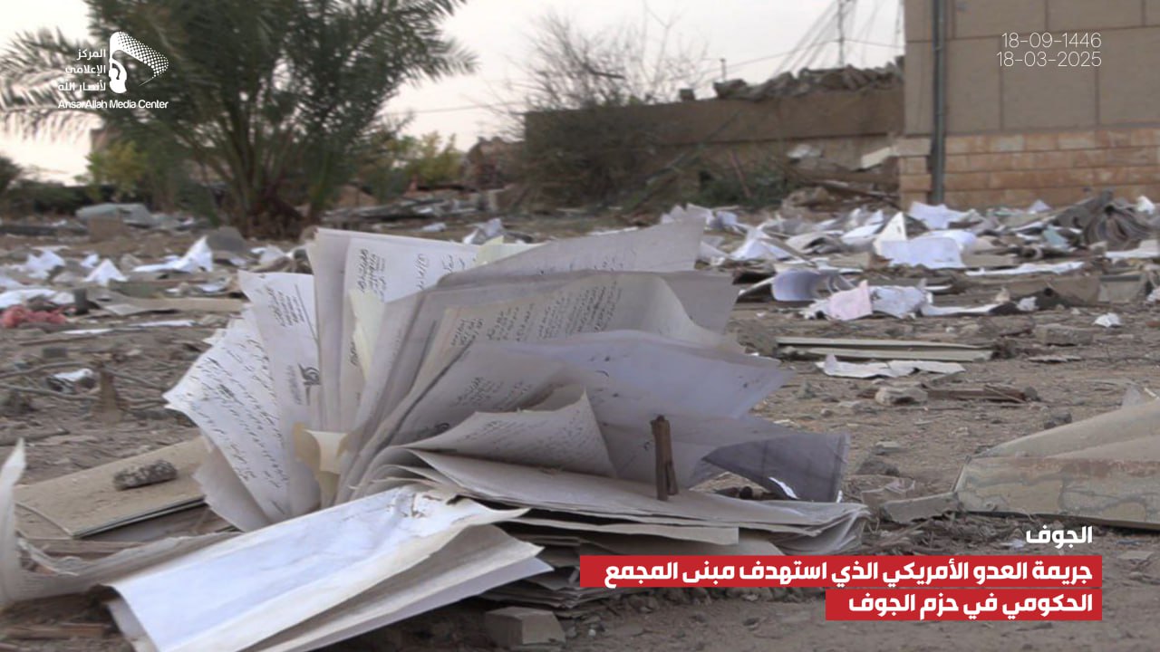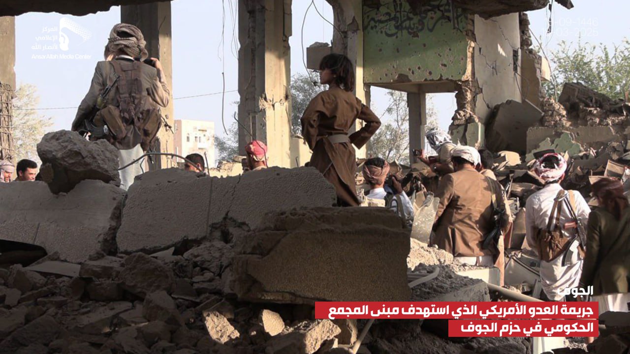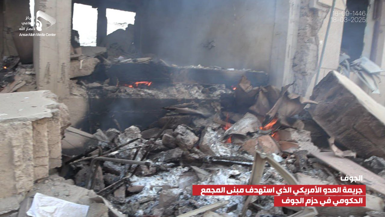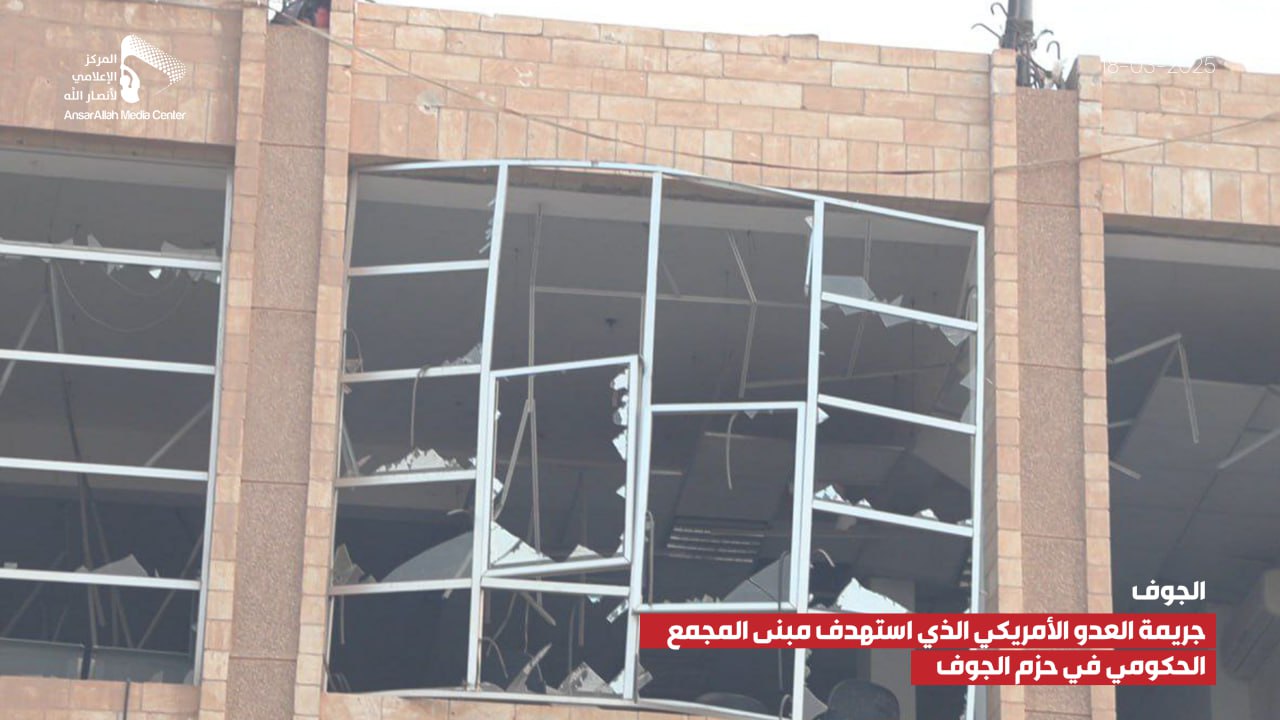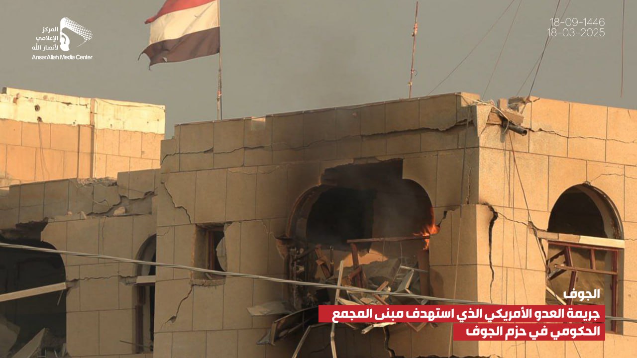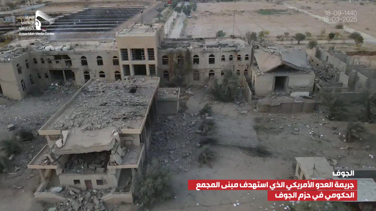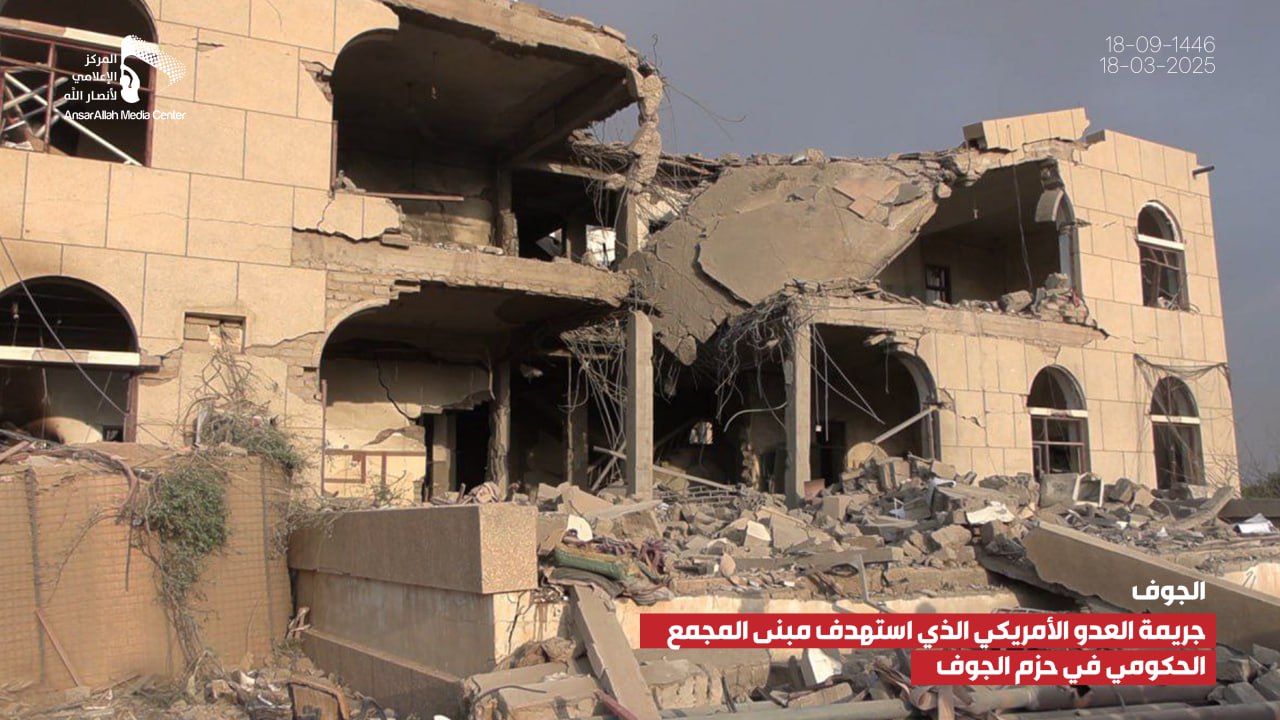 صور صور من جريمة العدوان الأمريكي الذي استهدف مبنى المجمع الحكومي بمديرية الحزم في الجوف يمانيون/ صور صور من جريمة العدوان الأمريكي الذي استهدف مبنى المجمع الحكومي بمديرية الحزم في الجوف 18-09-1446هـ | 18-03-2025م Share
