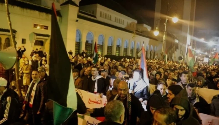 وردّد المتظاهرون، وفق ما أورد موقع “هسبرس” المغربي، شعارات مناهضة لـ”إسرائيل” والولايات المتحدة الأميركية، التي اعتبروها شريكة في دماء الفلسطينيين، كما ندّدوا بالموقف العربي الرسمي الذي وصفوه بأنه “متخاذل ومستسلم للإرادة الأميركية”.