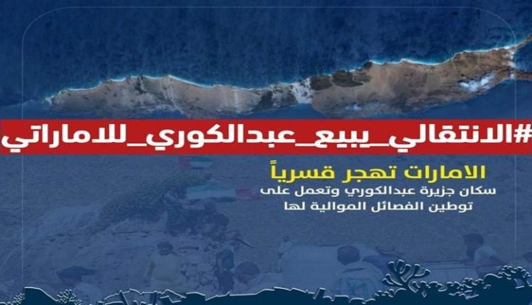 أطلق ناشطون حملة إلكترونية واسعة ضد خيانة مرتزقة الاحتلال الإماراتي، تحت وسم #الانتقالي_يبيع_عبد_الكوري_للإماراتي، مستنكرين التفريط بجزيرة يمنية استراتيجية لصالح مشاريع عسكرية تخدم الكيان الصهيوني وأمريكا.