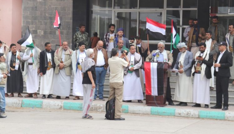 وفي الوقفة، أدان وزير الشؤون الاجتماعية والعمل سمير باجعالة، الجرائم الوحشية التي يرتكبها العدو الصهيوني بحق الشعب الفلسطيني، مؤكدًا أن الحصار المفروض على غزة واليمن لن يثني المقاومة الفلسطينية والشعب اليمني عن مواقفهم الثابتة في مناهضة الاحتلال والاستكبار العالمي.