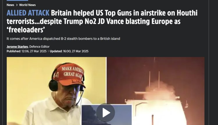 نشرت صحيفة “ذا صن” البريطانية تقريرًا كشفت فيه عن “تعاون عسكري بين بريطانيا والولايات المتحدة في دعم الغارات الجوية الأمريكية على اليمن، على الرغم من الانتقادات العلنية التي وجهها نائب الرئيس الأمريكي جيه دي فانس لأوروبا ووصفها بالمستغلة”. وأكد مصدر بريطاني أن “طاقم سلاح الجو الملكي البريطاني خاطر بحياته لدعم المهمة الأمريكية” وأوضح المصدر أن “الطائرات الأمريكية التي استخدمت الوقود البريطاني شكلت خط الدفاع الأول لحاملة الطائرات النووية”.