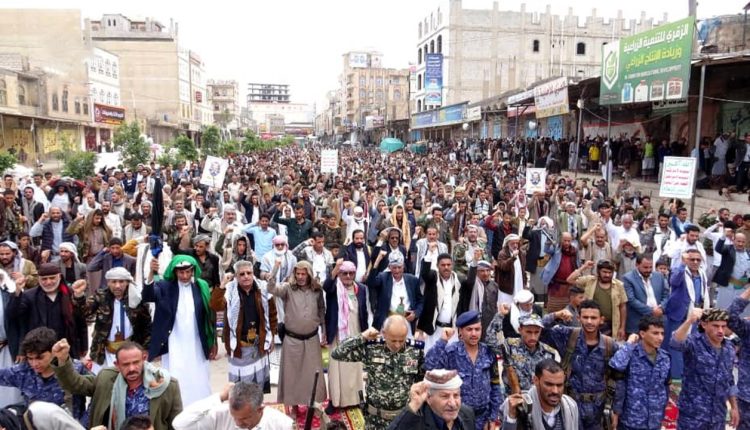 وأكدت الحشود أن الغارات التي يشنها العدو الأمريكي على العاصمة صنعاء والمحافظات لن ترهب الشعب اليمني ولن تثنيه عن مواقفه الثابتة، وأن استهداف المنشآت المدنية يعكس إفلاس المعتدين وعجزهم عن تحقيق أي انتصار في ميادين المواجهة.