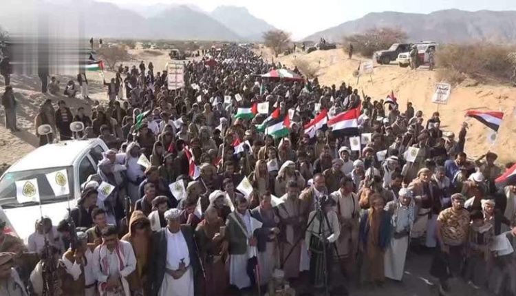وعلى ذات الصعيد، أدان بيان مشترك صادر عن مسيرات مأرب، استهداف العدوان الأمريكي للمدنيين والمنشآت الحيوية في اليمن خدمة للكيان الصهيوني، مجددين العهد والولاء والتفويض الكامل لقائد الثورة في اتخاذ الخيارات المناسبة لردع العدوان ونصرة الشعب الفلسطيني.