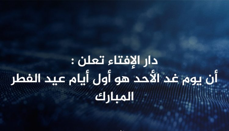 فإن دار الإفتاء تعلن أن يوم غد الأحد الموافق 30 مارس 2025م هو أول أيام عيد الفطر.