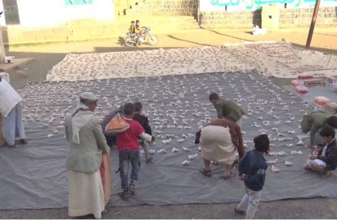 كما سيرت أسرة المروني في مديرية مناخة قافلة عيدية بمناسبة الذكرى الرابعة لاستشهاد أحمد عبد الله عباس المروني.