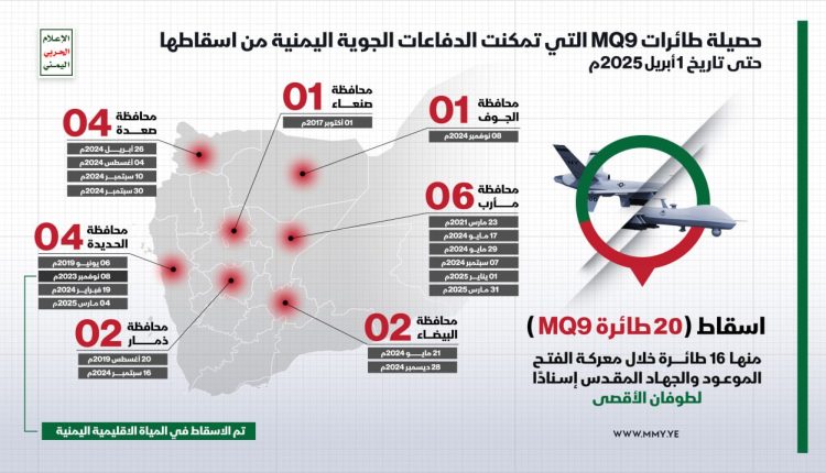 Imageأخبارأخبار محليةاهم الاخبار حصيلة طائرات MQ9 الأمريكية التي تمكنت الدفاعات الجوية اليمنية من اسقاطها يمانيون| انفو جرافيك| حصيلة طائرات MQ9 الأمريكية التي تمكنت الدفاعات الجوية اليمنية من اسقاطها (حتى 1 أبريل 2025م) Share