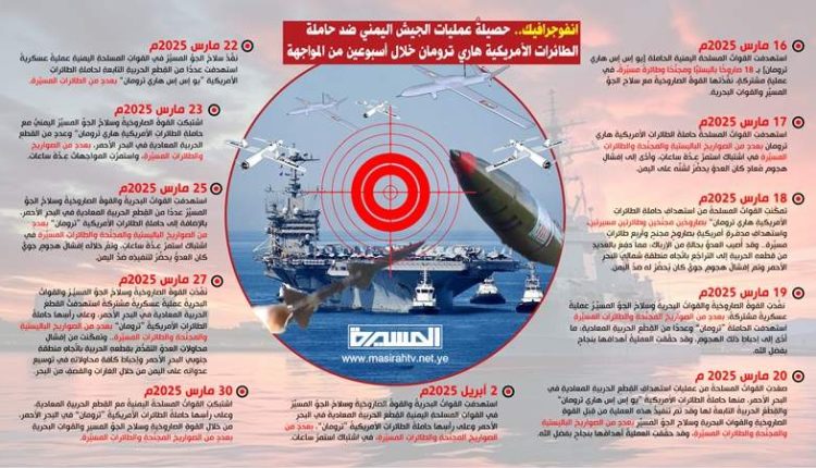 صور انفوجرافيك.. حصيلةُ عمليات الجيش اليمني ضد حاملة الطائرات الأمريكية هاري ترومان خلال أسبوعين من المواجهة يمانيون| انفوجرافيك.. حصيلةُ عمليات الجيش اليمني ضد حاملة الطائرات الأمريكية هاري ترومان خلال أسبوعين من المواجهة Share