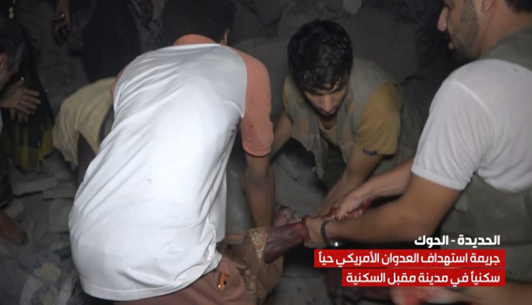 وأوضح البيان أن العدوان الأمريكي الأرعن، الذي نفذ هذه المجزرة، ليس له هدف سوى تفريغ حقده الدفين وانتقامه الفاشل”، مشيرًا إلى أن “استهداف المدنيين بهذه الوحشية يفضح الوجه الحقيقي للعدو الأمريكي، الذي يواصل استباحة دماء الشعب اليمني، ويظهر حجم الإفلاس والتخبّط وتصعيد الانتهاكات والجرائم الإرهابية باستهداف المزيد من المدنيين في الأحياء السكنية والأعيان المدنية التي يجرِّم القانون الدولي استهدافها.