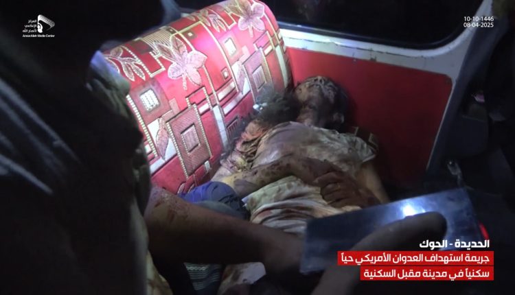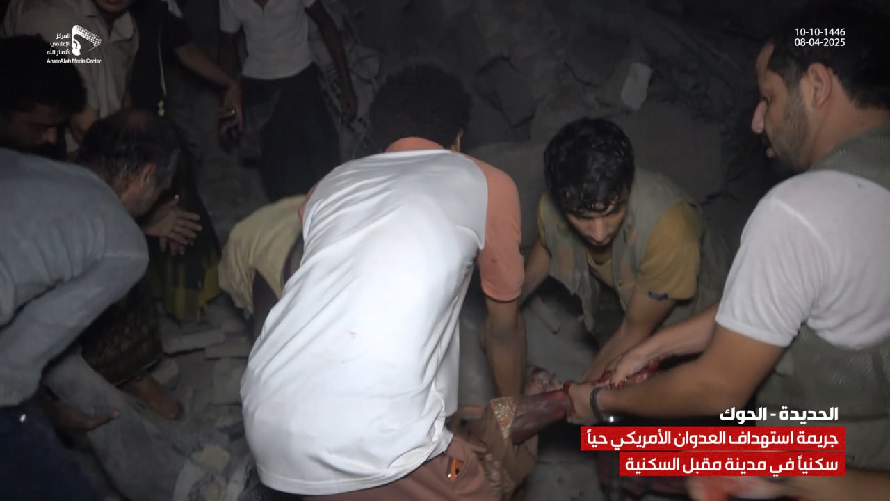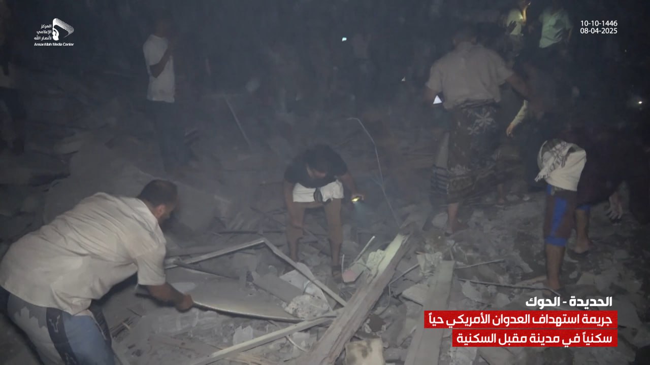 بالصور والفيديو| المشاهد الكاملة لجريمة استهداف العدوان الأمريكي مدينة (أمين مقبل) السكنية في مديرية الحوك بمحافظة الحديدة