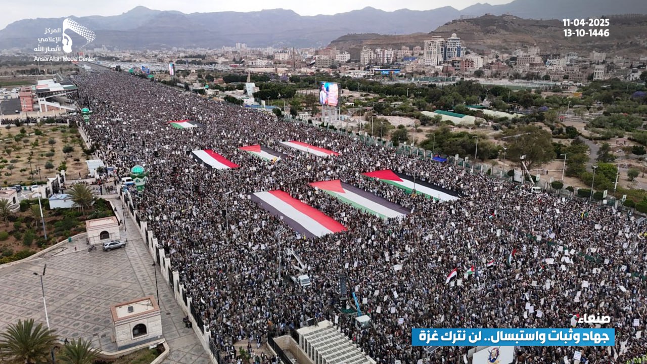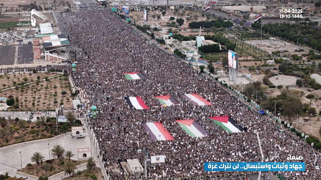 صور جوية| اليمن يستأنف الطوفان المتجدد بعنفوان أقوى وزخم أكثر… حشود مليونية في مسيرة “جهاد وثبات واستبسال.. لن نترك غزة” في ميدان السبعين بالعاصمة صنعاء 13-10-1446هـ | 11-04-2025م