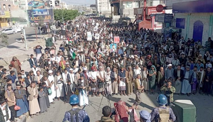 محافظة البيضاء تشهد مسيرات جماهيرية حاشدة تأكيداً على الاستمرار في نصرة غزة