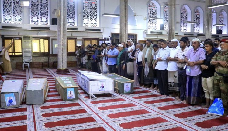 جرت مراسم التشييع من أمام جامع الأسودي، بعد الصلاة على جثامين الشهداء، بحضور رسمي وشعبي، تقدّمه المحافظ عبدالله عطيفي، والقائم بأعمال المدير التنفيذي للشركة اليمنية للغاز ياسر الواحدي، ووكيل المحافظة لشؤون مربع المدينة علي الكباري، وقيادات محلية وعسكرية وموظفي فرع شركة الغاز بالمحافظة.