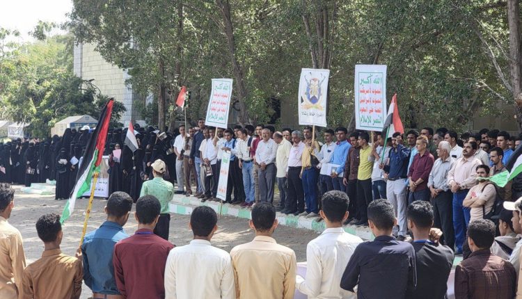 وقفة بجامعة الحديدة تنديداً بجرائم العدوان الأمريكي والصهيوني