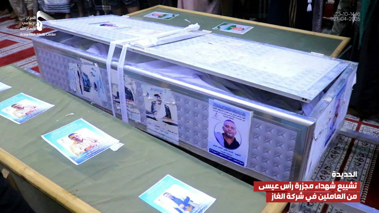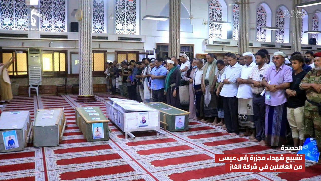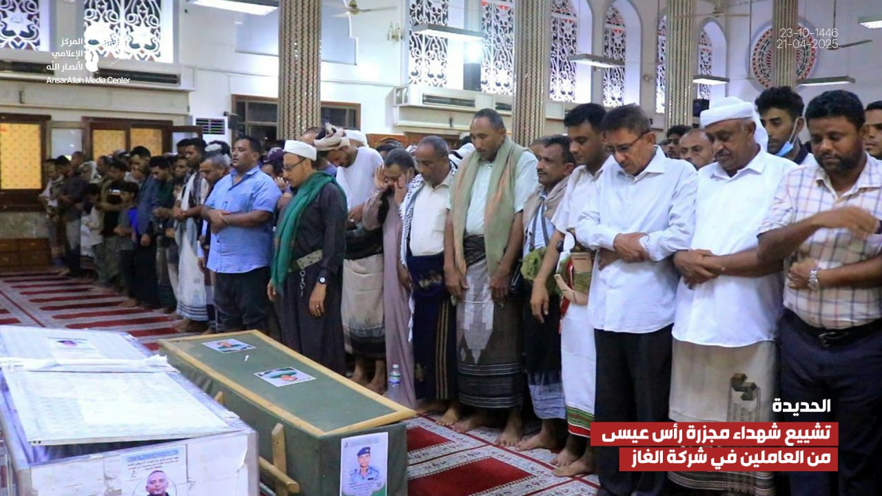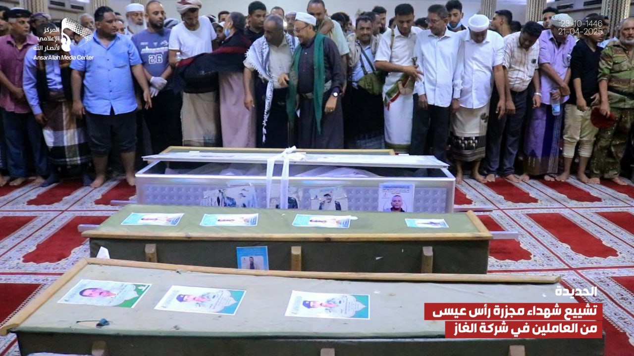 صور صور| تشييع شهداء مجزرة رأس عيسى في الحديدة من العاملين في شركة الغاز 23-10-1446هـ يمانيون/ صور صور| تشييع شهداء مجزرة رأس عيسى في الحديدة من العاملين في شركة الغاز 23-10-1446هـ | 21-04-2025م Share