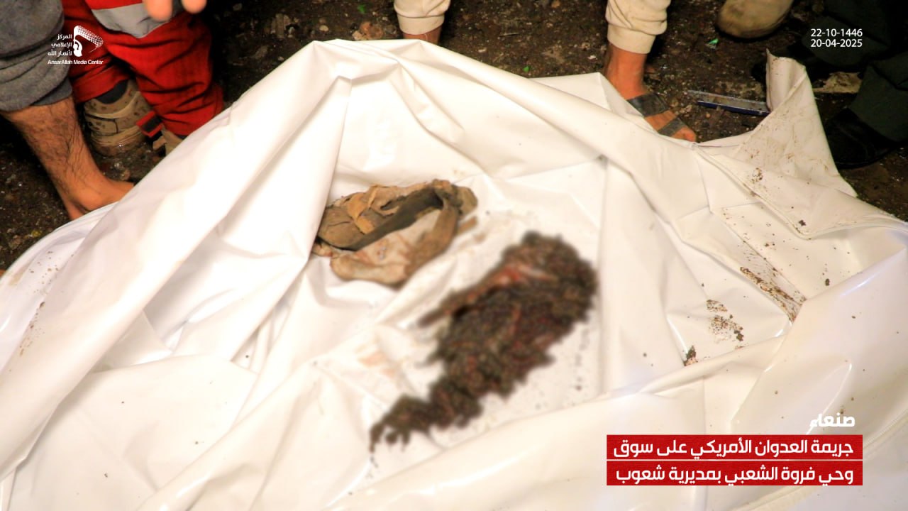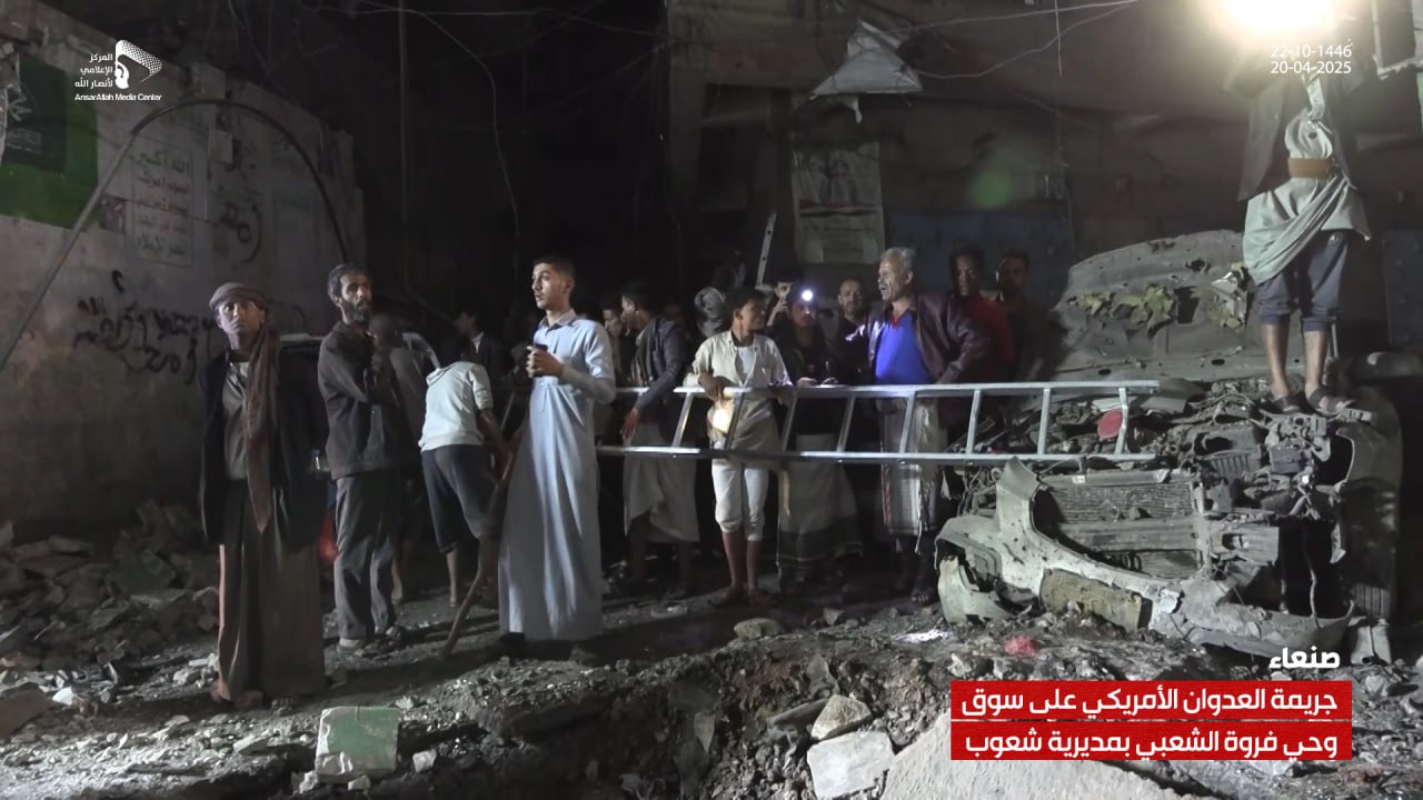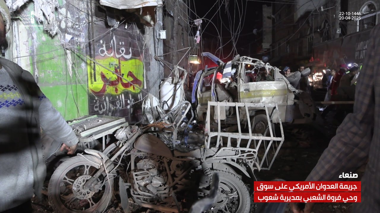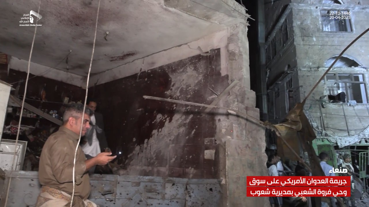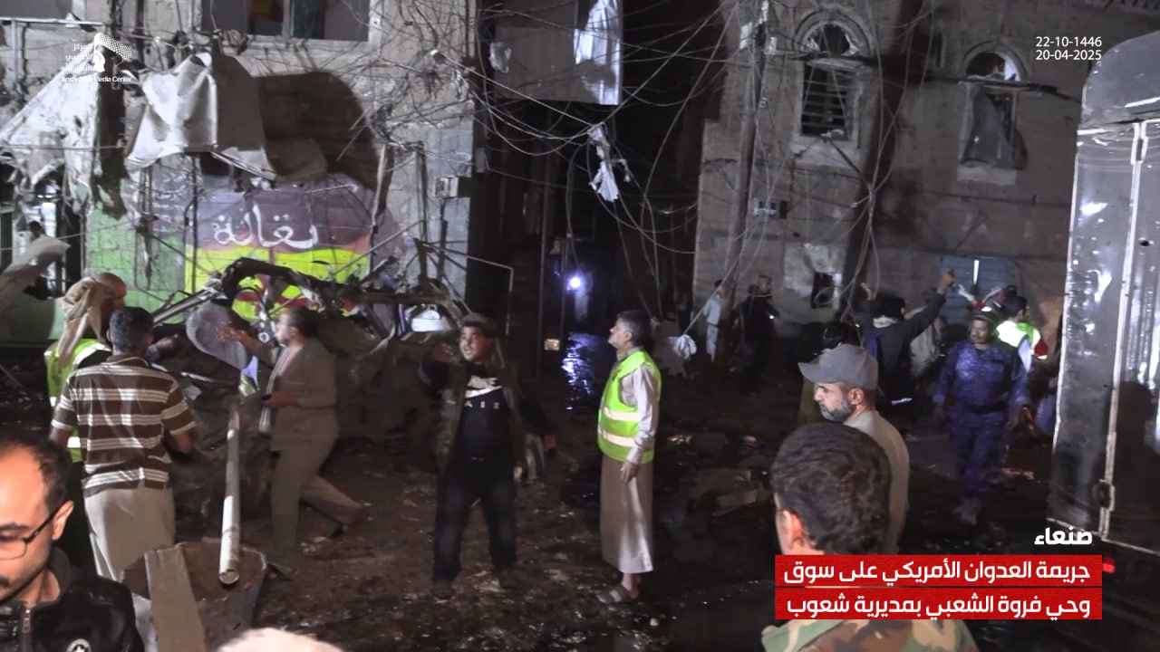 شاهد | فشل أمريكي يريق به دماء الشعب اليمني مساندة للكيان الغاصب… شهداء وجرحى في جريمة أمريكية استهدفت حي وسوق فروة الشعبي بـشعوب في العاصمة صنعاء 23-10-1446هـ | 21-04-2025م