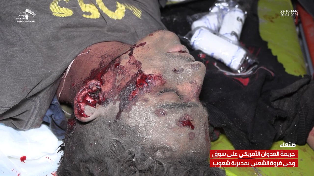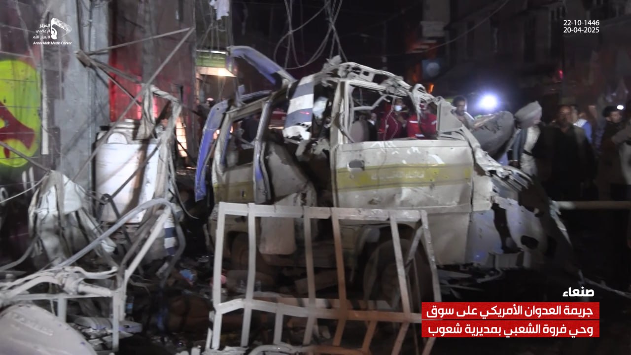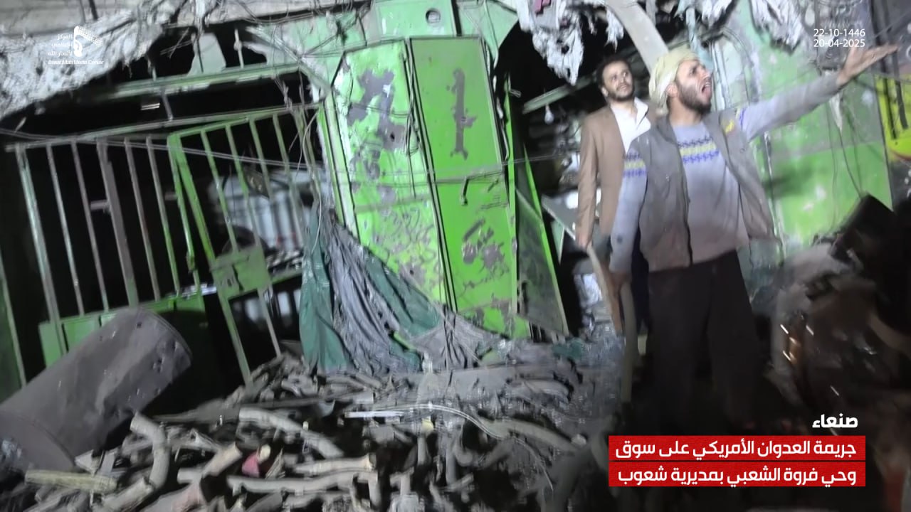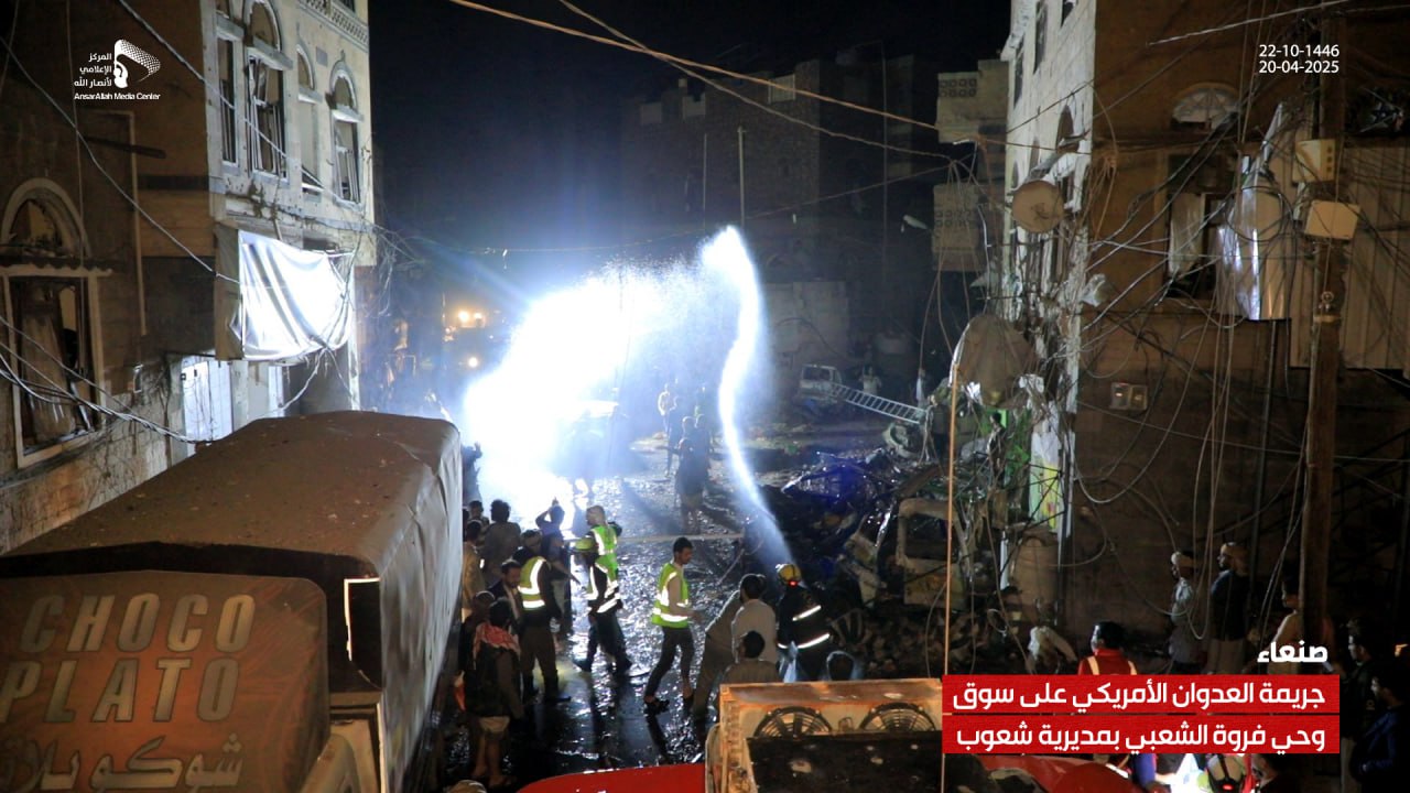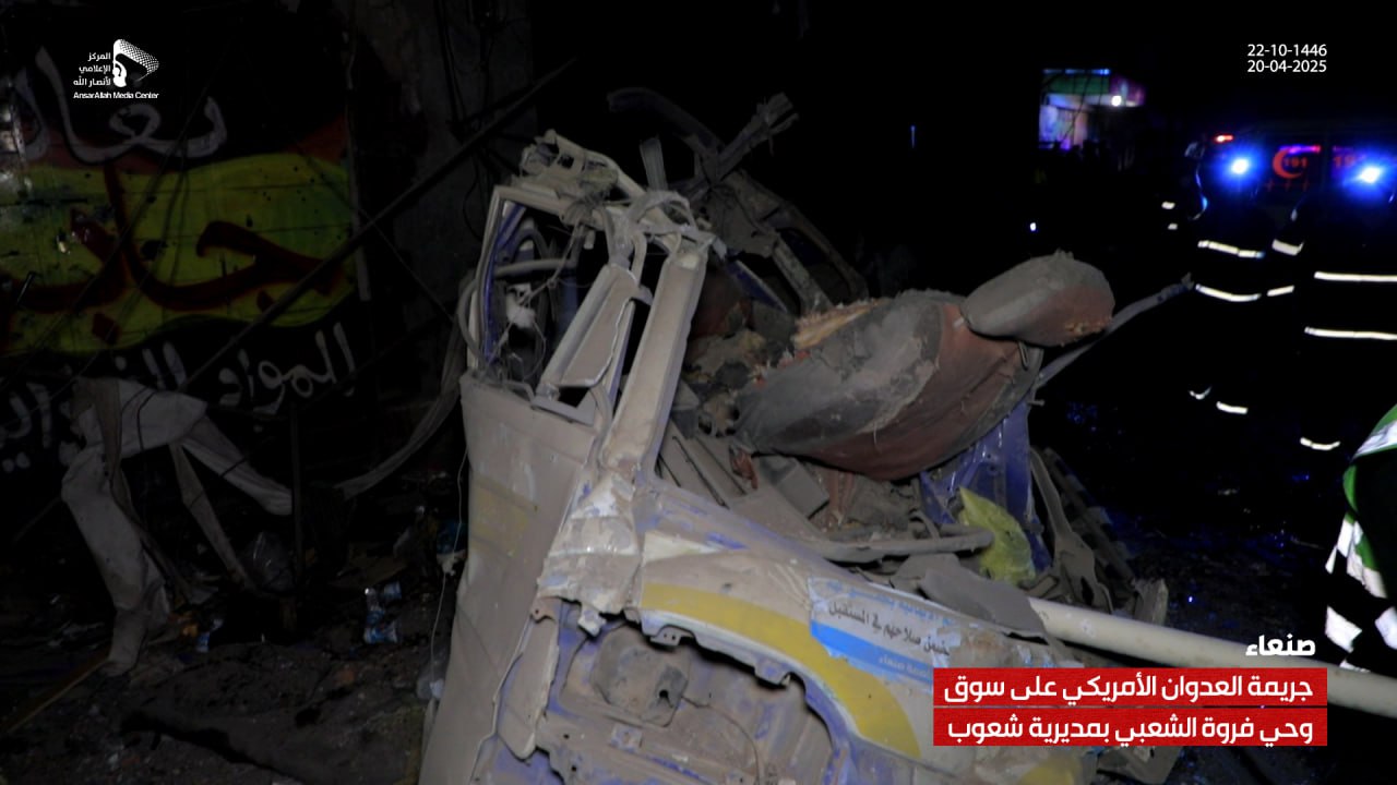 شاهد | فشل أمريكي يريق به دماء الشعب اليمني مساندة للكيان الغاصب… شهداء وجرحى في جريمة أمريكية استهدفت حي وسوق فروة الشعبي بـشعوب في العاصمة صنعاء 23-10-1446هـ | 21-04-2025م